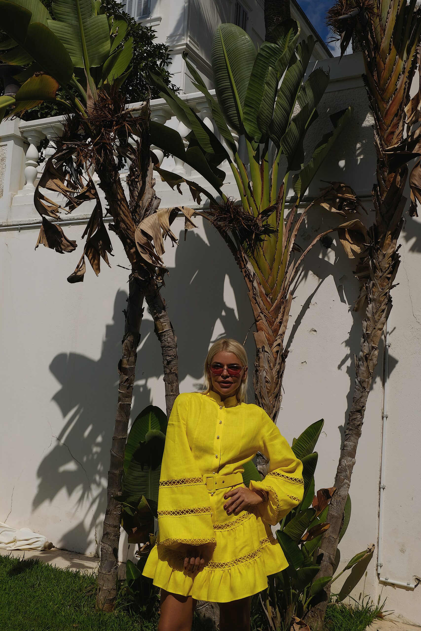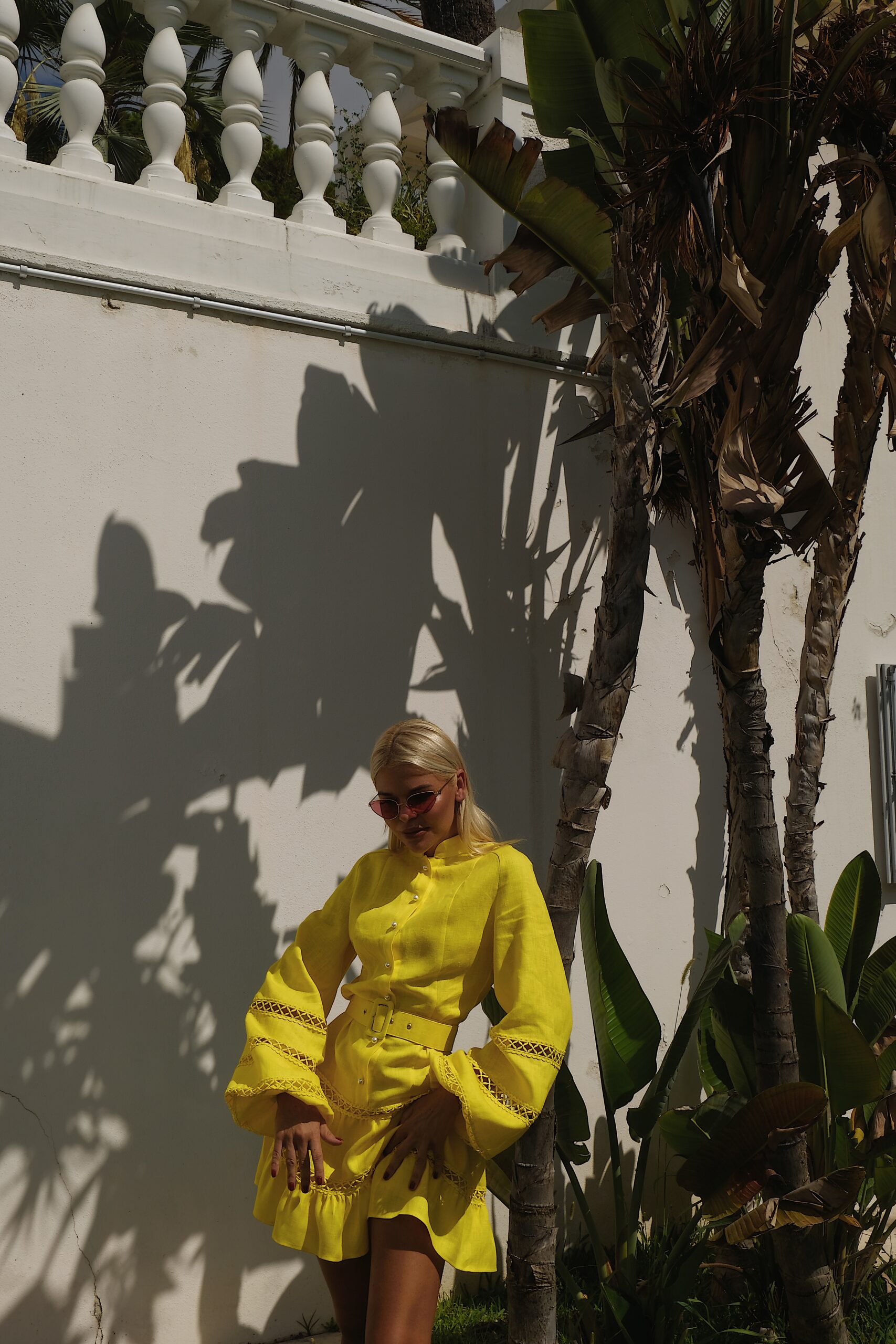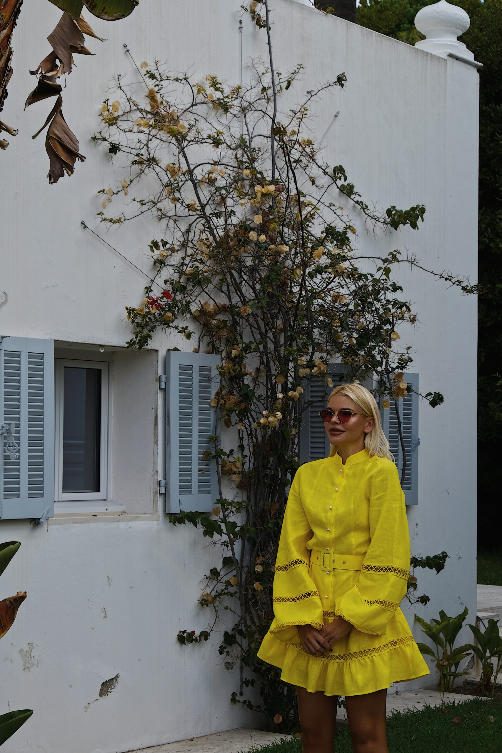 – Платье с кружевами и широким рукавом